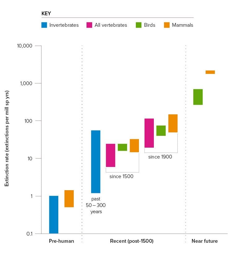 However, “As the global population has exploded over the last 200 years, turbocharged by fossil-fueled industrialization, environmental destruction has increased massively. . . . Meanwhile our destruction of the natural world has led to species loss at a rate many hundred times higher than the historical average, with scientists estimating that around one million species are currently threatened with extinction.”2 If anything, climate change is accelerating this process, while threatening to make many places on Earth uninhabitable, as well as increasing food shortages, health risks, and infrastructure damage.
